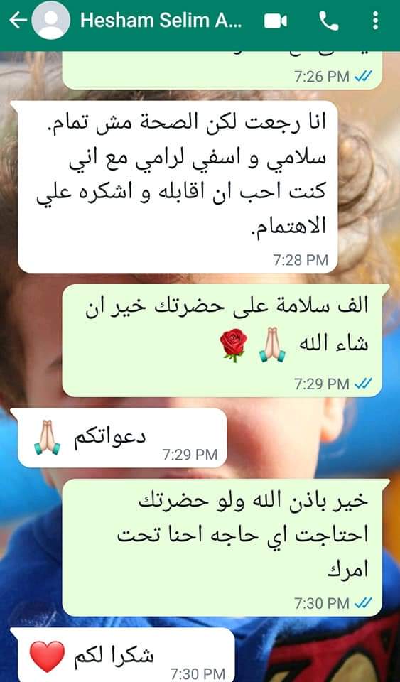 وكتب هشام سليم: "أنا رجعت لكن الصحة مش تمام .. سلامي وأسفي لرامي مع إن كنت أحب أن اقابله واشكره علي الاهتمام".