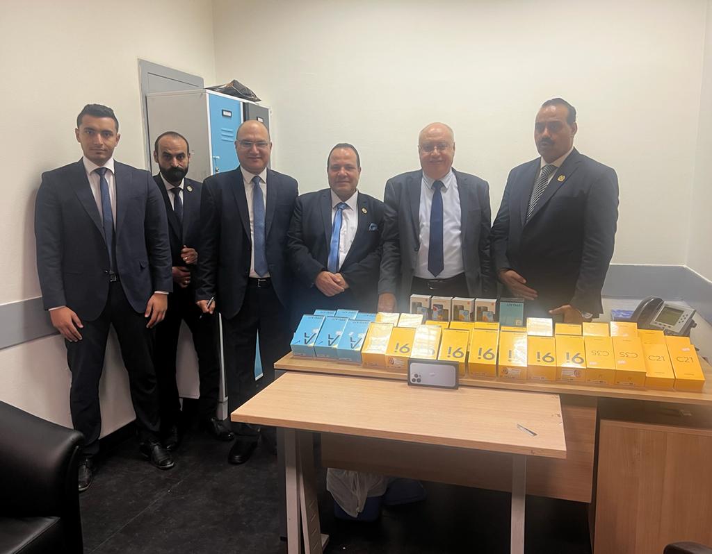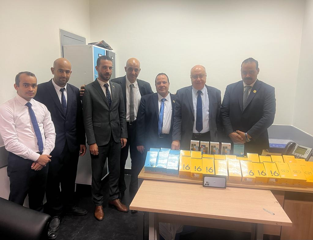 وبتفتيش حقائبة علي جهاز الفحص بالأشعة بواسطة كل من علاءالدين عمارة و كريم نادي مأمورا الجمرك واللذان تلاحظ لهما وجود عبوات متكررة ومتماثلة بكثرة داخل حقائب الراكب، قام إبراهيم حسن طلحه مدير الحركة المشرف على صالة الوصول بمبني الركاب رقم ٣ بتكليف هيثم محمد مأمور الجمرك بتفتيش حقائب الراكب يدويا مما اسفر عن وجود ٥١ تليفون محمول قام فتحي فوزي مدير الإدارة بالانابة بتشكيل لجنة لجرد المضبوطات وتحريزها.