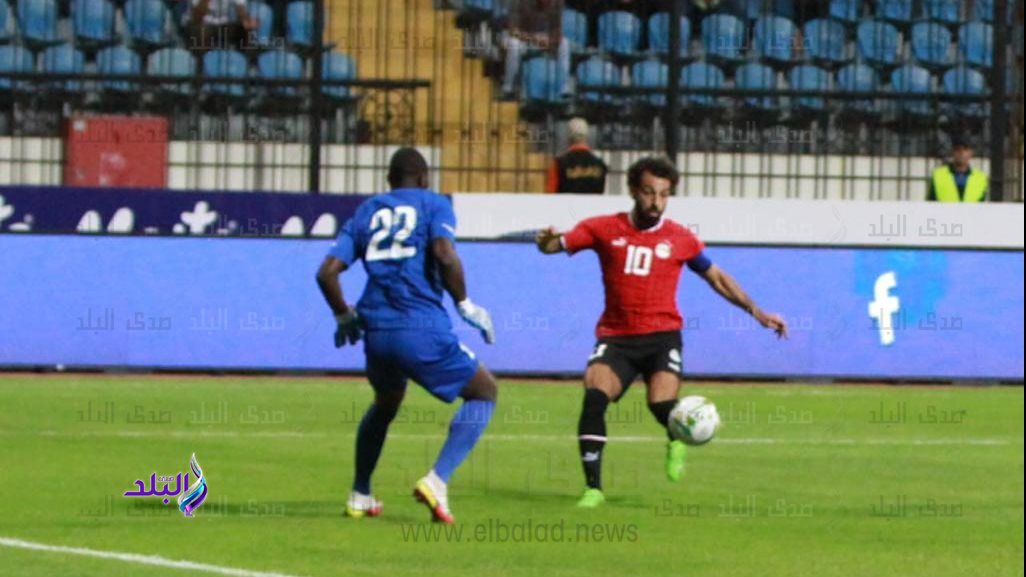 أحرز ثلاثية منتخب مصر الوطني محمد صلاح هدفين ومصطفى محمد هدف.