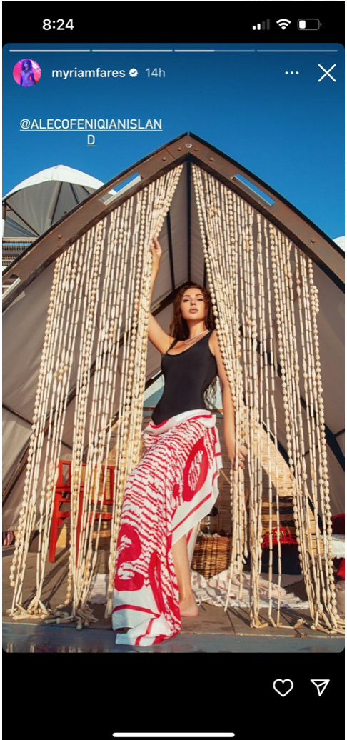 شاركت الفنانة اللبنانية "ميريام فارس" جمهورها صورة جديدة من عطلتها الصيفية من خلال صفحتها الرسمية بموقع تبادل الصور والفيديوهات "إنستجرام".