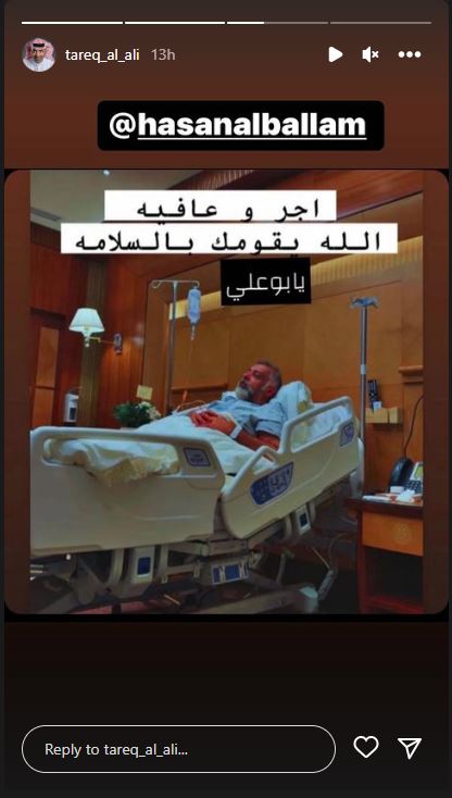 وعلق طارق العلى ، على صورة حسن البلام قائلا : “أجر وعافية الله يقومك بالسلامة يا ابو على”.