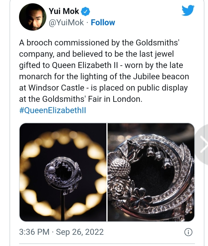 كان أحد آخر دبابيس التي ارتدتها الملكة الراحلة تصميمًا فريدًا يُعتقد أنه آخر جوهرة حصلت عليها قبل وفاتها في وقت سابق من هذا الشهر.