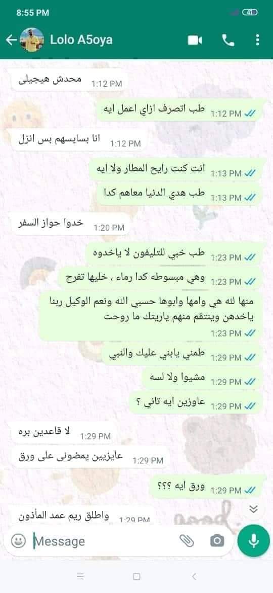 وأشارت إلي أن شقيقها ولاء زايد اشتكي مرارا من الجلوس بمفرده في السعودية وكثرة المشاكل بينهم فقرر الزواج من أحدي فتيات مدينة الشهداء جارتهم وقاموا لخطبتها ونزل من أجل كتب الكتاب.