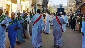 كما بدأ أبناء الطريقة المرغنية الختمية بمحافظة أسوان، مساء اليوم الجمعة، "طوفة المولد" أو مسيرة احتفالية بالمولد النبوى الشريف شارك فيها العديد من المريدين والمحبين ضمن احتفالات الطرق الصوفية بالمولد النبوى.