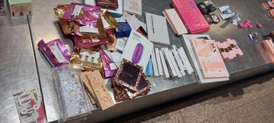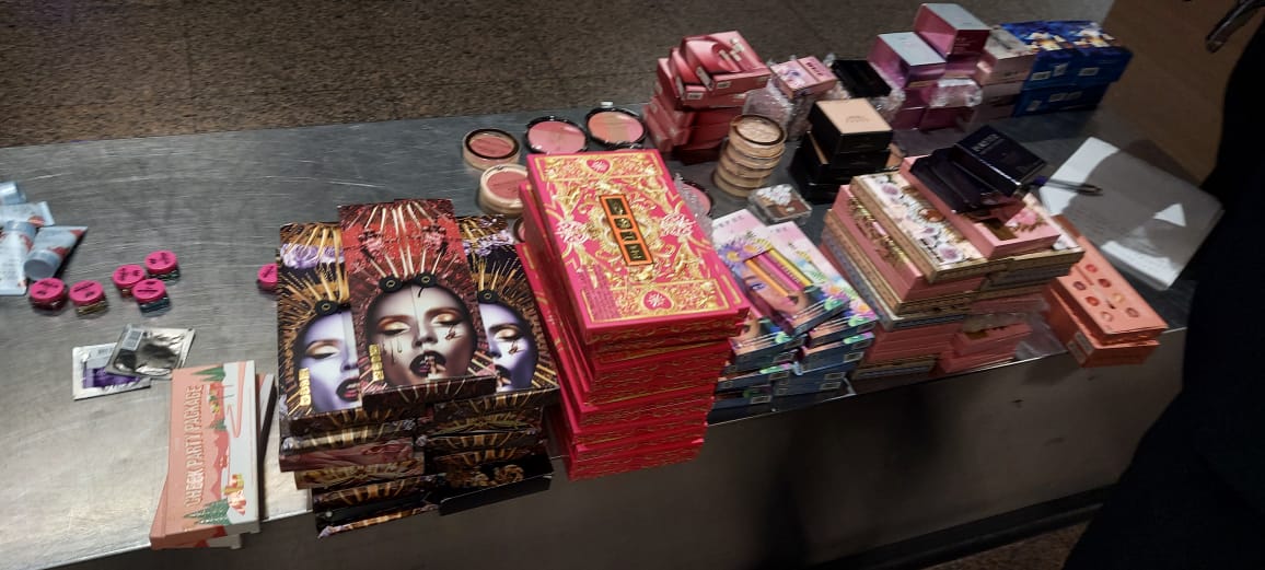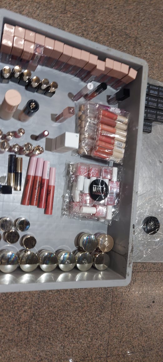وبتفتيش حقائبة علي جهاز الفحص بالأشعة بواسطة كل من أحمد عبد العليم مأمور الجمرك ومحمد عبد المنعم صالح رئيس القسم تلاحظ لهما وجود عبوات متكررة بكثرة داخل حقائب الراكب، فقام سامح زاهر مدير الحركة المشرف على صالة الوصول بمبني الركاب رقم ٣ بتكليف هيثم رجب مأمور الجمرك بتفتيش حقائب الراكب يدويا ما أسفر عن ضبط كمية من مستحضرات التجميل مخبأة داخل عبوات "لانش بوكس" ولفافات بلاستيكية.