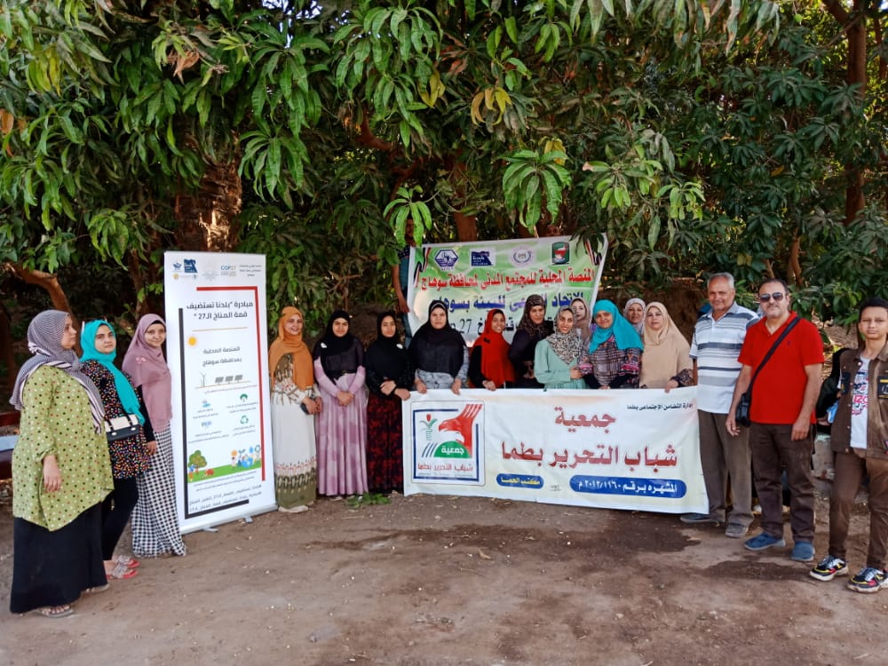 نظمت المنصة المحلیة للمبادرة في محافظة سوھاج مجموعة من الأنشطة في مجال التوعیة بالتغیرات المناخیة وأثارھا على المجتمع، تضمنت ھذه الأنشطة ندوة لتوعیة السیدات بمدینة طما، بضرورة ترشید الموارد الطبیعیة، واستھلاك الطاقة، وتخفیف استھلاك الكیماویات، والتخلص السلیم من المخلفات المنزلیة.