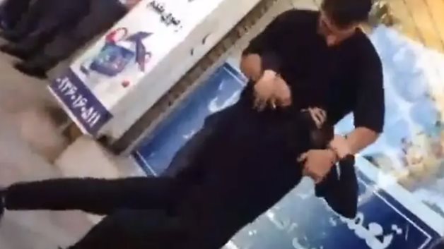 وفي مقطع فيديو آخر صرخ رجل 'لا تضرب زوجتي فهي حامل' أثناء محاولتها حمايتها من شرطة مكافحة الشغب في مدينة رفسنجان يوم السبت.