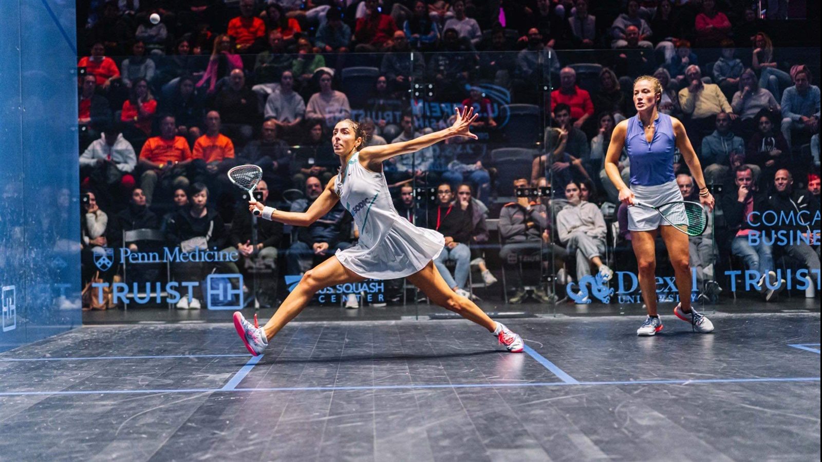 وأخيرًا تغلبت هانيا الحمامي على الأمريكية أوليفيا فيتشر بنتيجة 3-0، بواقع نقاط (12-10), (11-8), (11-5) .