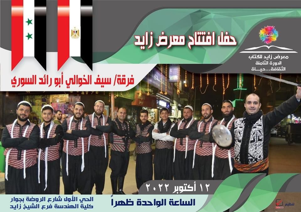 ينطلق غداً الاربعاء معرض الشيخ زايد للكتاب تحت رعاية وزارة الثقافة ووزارة الإسكان و هيئة المجتمعات العمرانية وجهاز مدينة الشيخ زايد ويستمر حتى يوم ٢٤ أكتوبر بحضور السفير السوري والقنصل السوري ورئيس الجالية السورية بمصر ، حيث ان دولة سوريا الشقيقة ضيف شرف المعرض من خلال اتحاد الناشرين السوريين للتعريف بالثقافة السورية وتعزيز العلاقات الثقافية