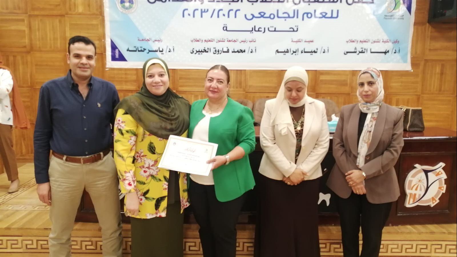 كما تم خلال حفل الاستقبال تكريم الطلاب أوائل الفرق الدراسية بالكلية، وتكريم مجلس اتحاد الطلبة، وممثلهم باتحاد جامعة الفيوم، بالإضافة إلى تكريم الطلاب المتميزين في الأنشطة الطلابية، والفائزين في المسابقات المقامة سواء علىمستوى الكلية أو الجامعة.
