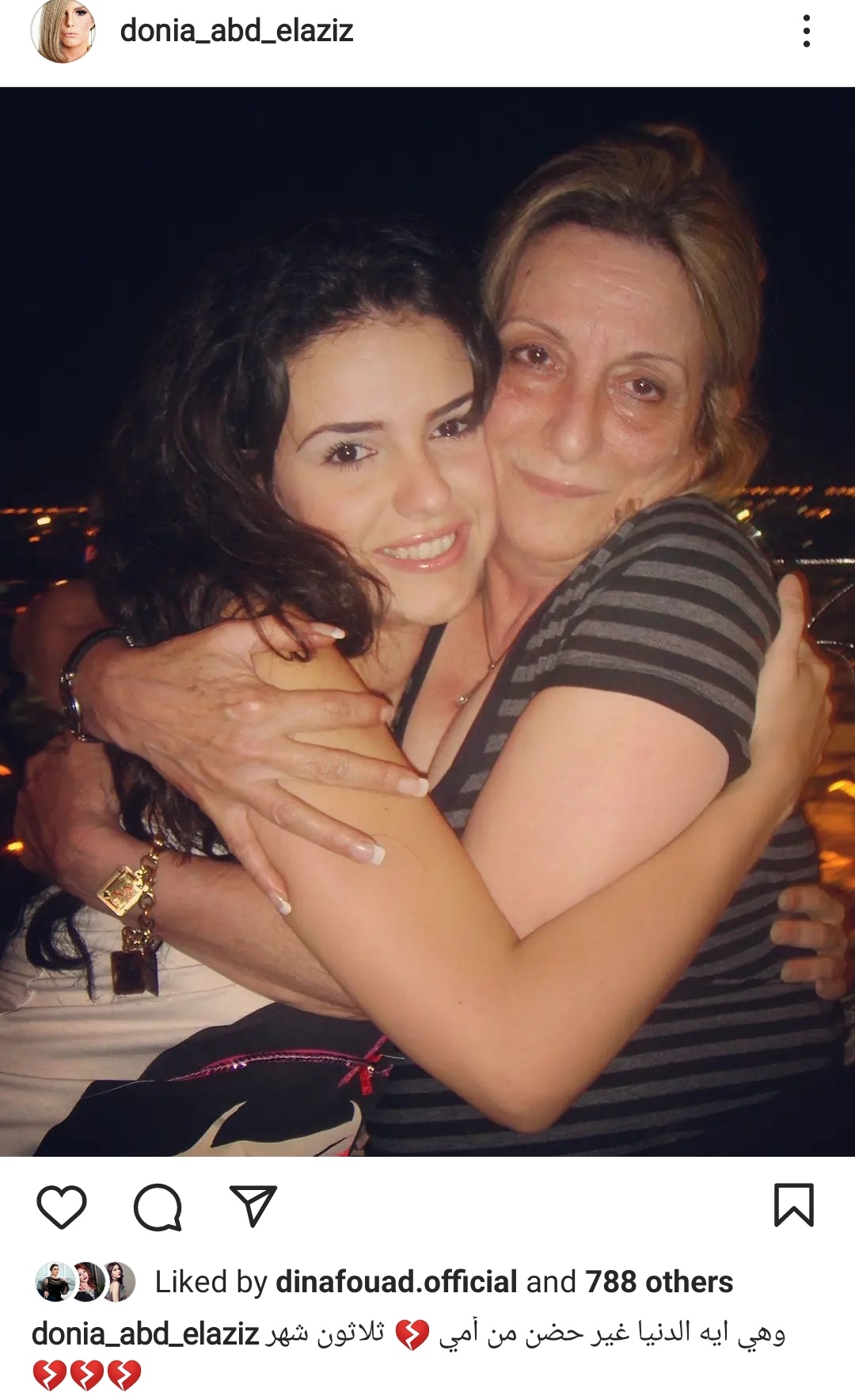 وجهت الفنانة دنيا عبد العزيز رسالة لوالدتها الراحلة مستعيدة ذكرياتها معا، عبر حسابها على موقع تبادل الصور والفيديوهات "إنستجرام".