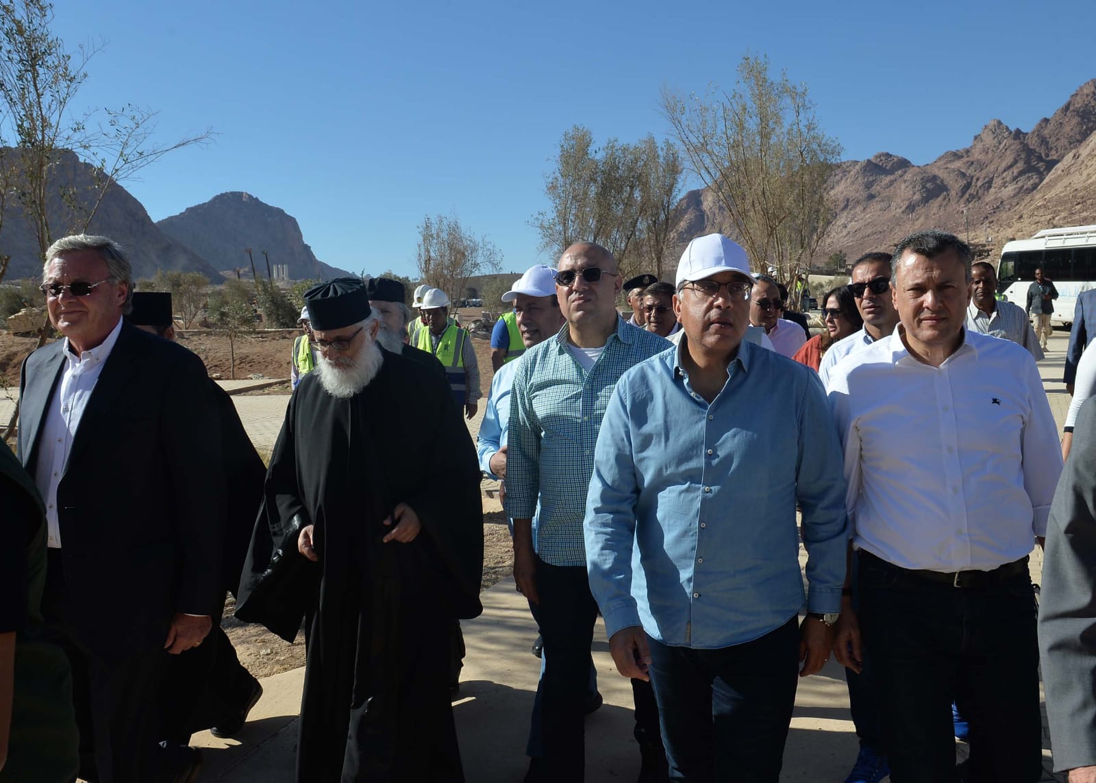 توجه الدكتور مصطفى مدبولي، رئيس مجلس الوزراء، ومرافقوه إلى مدينة "سانت كاترين"، لتفقد عدد من مشروعات تطوير موقع التجلى الأعظم، التي يتم تنفيذها بالمدينة، طبقا لتوجيهات الرئيس عبدالفتاح السيسى، رئيس الجمهورية.