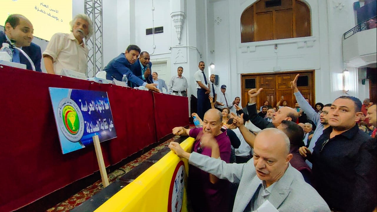 واصل اتحاد نقابات المهن الطبية عقد الجمعية العمومية الطارئة التي دعا إليها اليوم الجمعة بعد حملة توقيعات للمطالبة بعقد عمومية للاتحاد، وسط مشادات وهتافات ورفع لافتات ومقاطعات لمن على المنصة من جانب الحضور.