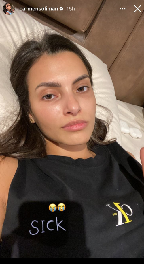 وظهرت كارمن سليمان بوجه شاحب وعلقت علي الصورة قائلة: مريضة.