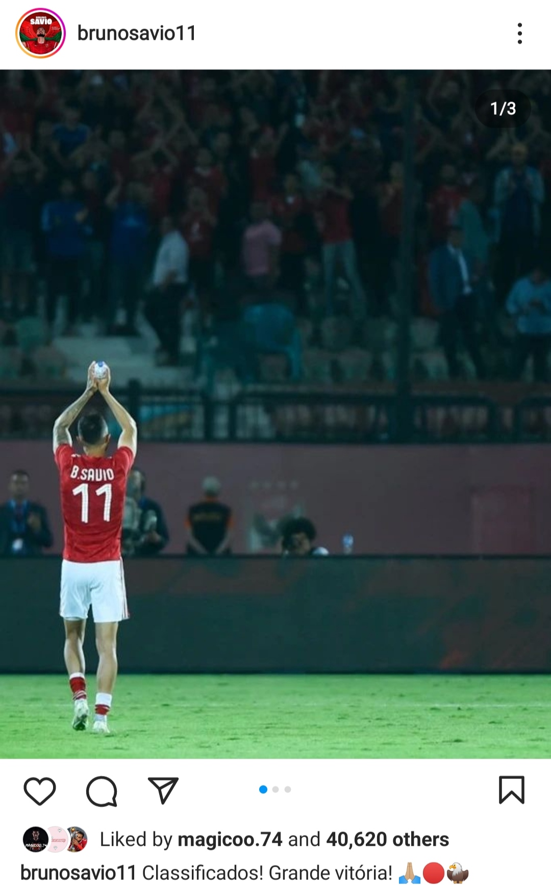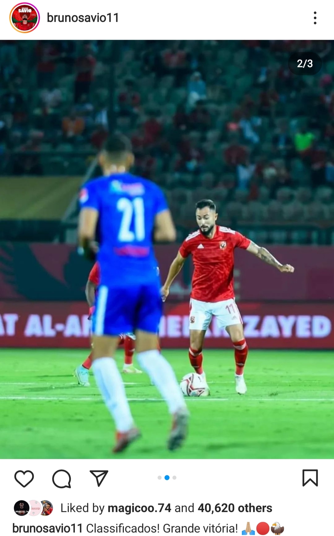 نشر البرازيلي برونو سافيو نجم القلعة الحمراء، عدة صورة له عبر حسابه علي انستجرام من مباراة أمس.
