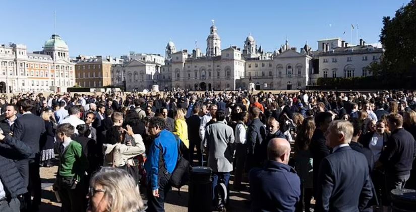 وقال شهود عيان إن مئات الأشخاص تجمعوا في هورس جاردز باريد خلف داونينج ستريت.