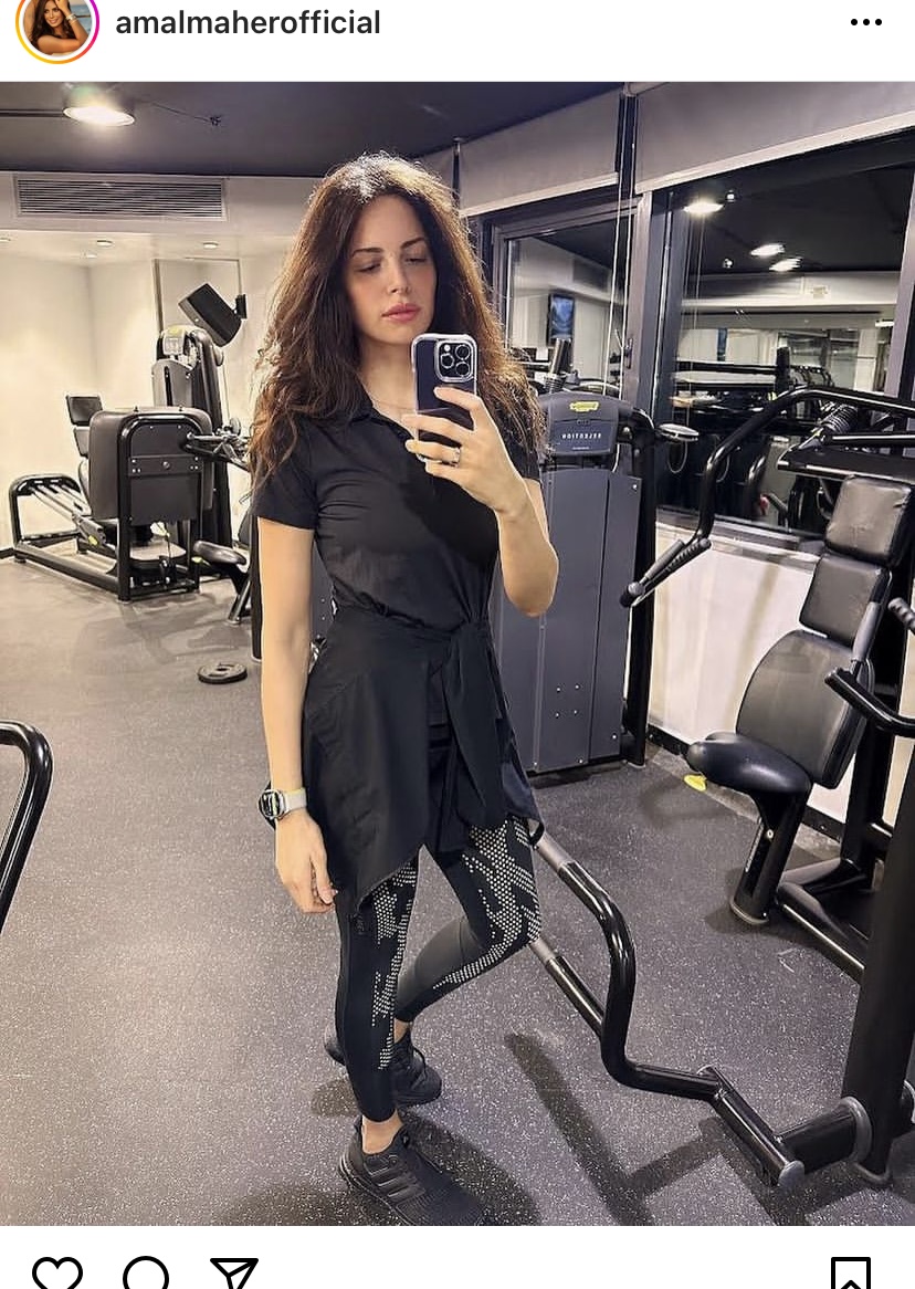 وظهرت آمال ماهر بإطلالة رياضية من داخل الجيم .
