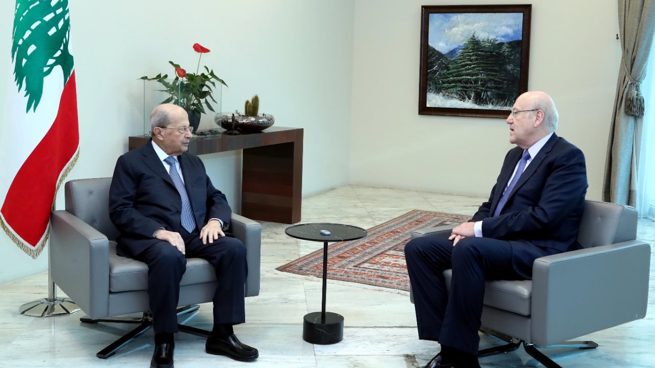 كان رئيس حكومة تصريف الاعمال اللبناني نجيب ميقاتي، التقي اليوم الرئيس اللبناني ميشال عون في قصر بعبدا.