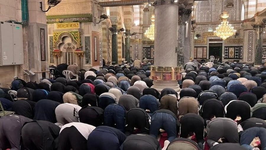 واكتظت ساحات المسجد الأقصى وباحاته بآلاف المصلين، الذين قدموا من محافظات الضفة بما فيها القدس المحتلة، وداخل أراضي العام 48.