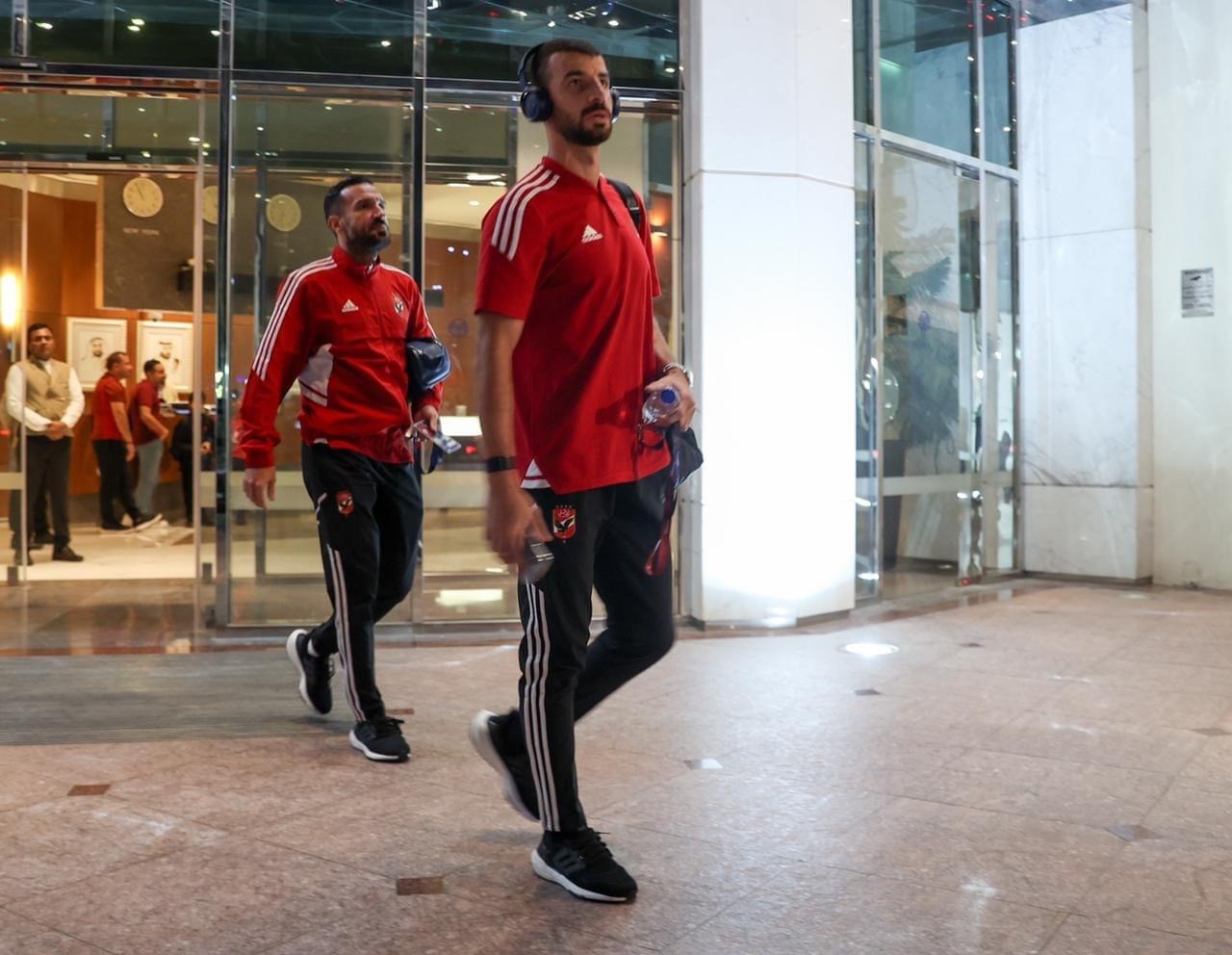 تحرك لاعبو النادي الأهلي إلى ملعب ستاد هزاع بن زايد استعدادًا لمواجهة غريمه التقليدي نادي الزمالك في السوبر المصري.