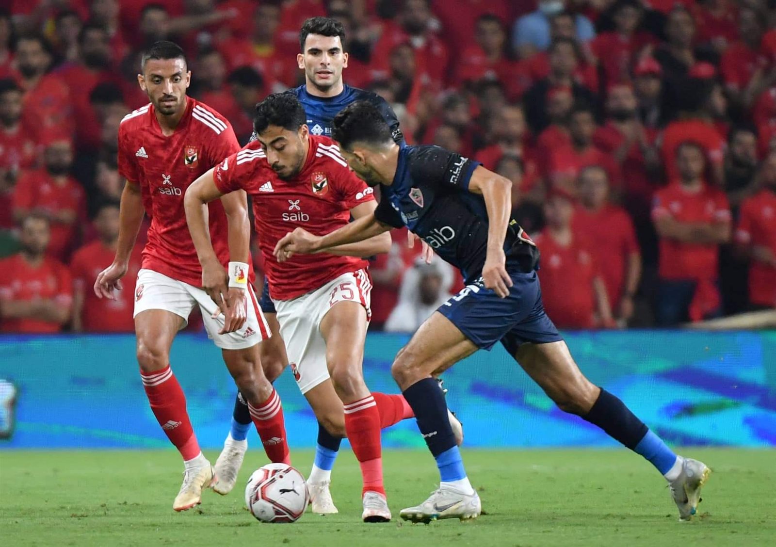 وبدأ السوبر المصري بحذر دفاعي من جانب الأهلي والزمالك وحصل أحمد سيد زيزو على ركلة حرة عقب سقوطه على الأرض وأبعد حمدى فتحى فى الدقيقة الثانية كرة من أمام أقدام سيف الجزيرى.