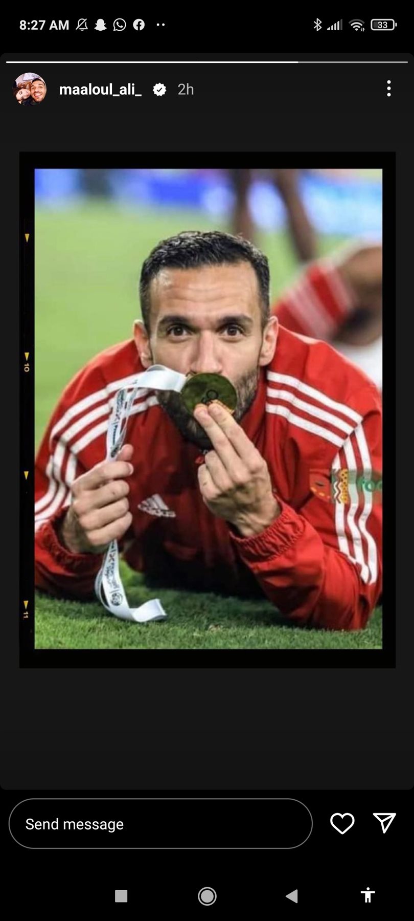 احتفل اللاعب علي معلول لاعب النادي الأهلي بكأس السوبر عبر صفحته الرسمية بموقع التواصل الاجتماعي للصور والفيديوهات إنستجرام.