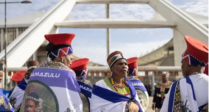 ووفقا لهيئة الإذاعة البريطانية، تنتشر الأغاني الاحتفالية والهتافات في الاستاد الرئيسي في مدينة ديربان الساحلية بجنوب إفريقيا قبل التتويج التاريخي لملك الزولو.