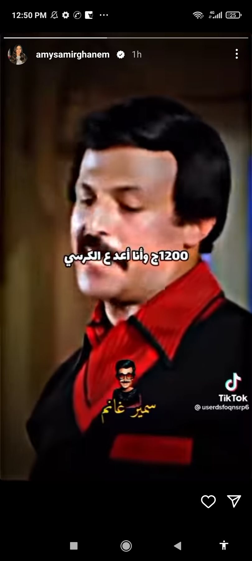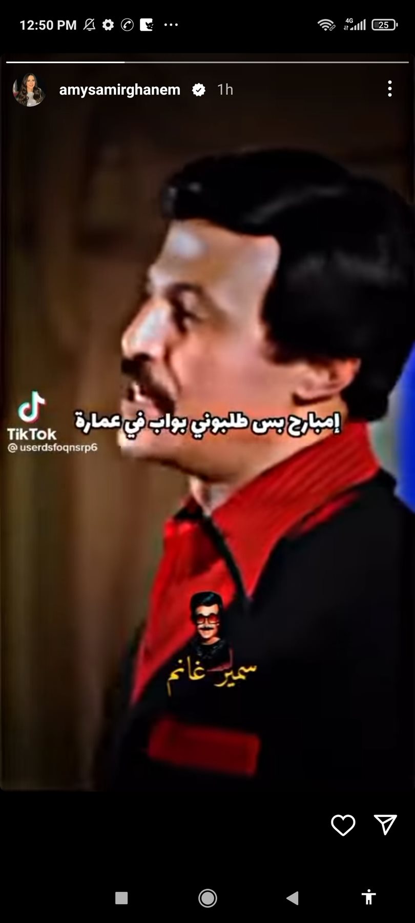 واستعادت إيمي خلال الفيديو ذكريات والدها الراحل سمير غانم من أحد افلامه، مما نال إعجاب متابعيها.
