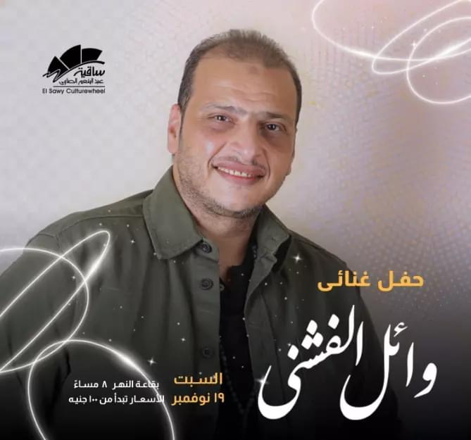 يحيى المطرب وائل الفشنى حفلا غنائيا يوم 19 نوفمبر الجارى بقاعة النهر فى ساقية الصاوى فى تمام الثامنة مساء، وتم طرح التذاكر بسعر 100 جنيه.