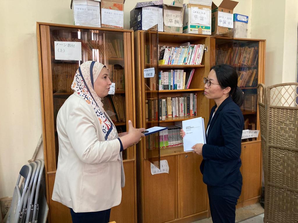 وشهدت فعاليات الاحتفالية التقاط الصور لتسلم عميدة كلية الألسن قائمة الكتب المهداة من مؤسسة اليابان من هاشيموتو وتم إجراء جولة تفقدية لمكتبة قسم اللغة اليابانية وإلقاء نظرة على الكتب المهداة للقسم.