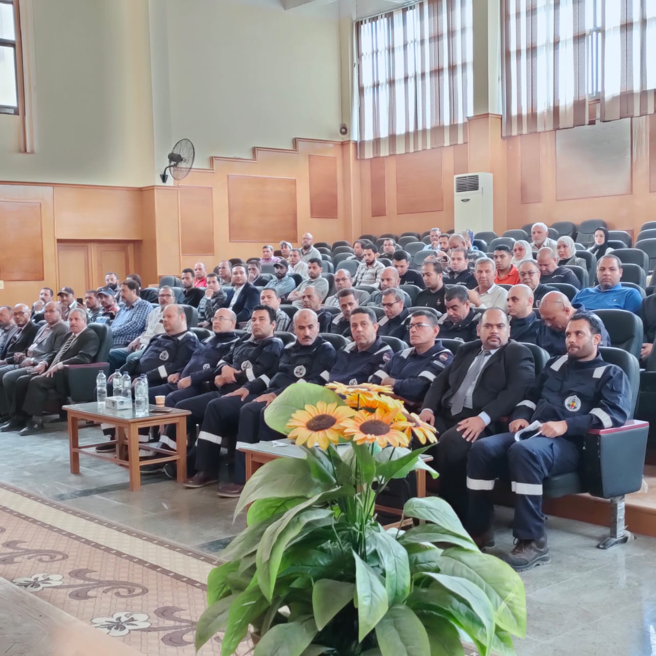 ألقى المحاضرات: رجاء حسين، وإسلام حمدي ، مدحت كامل، من الإدارة العامة للسلامة والصحة المهنية وتأمين بيئة العمل بالوزارة.