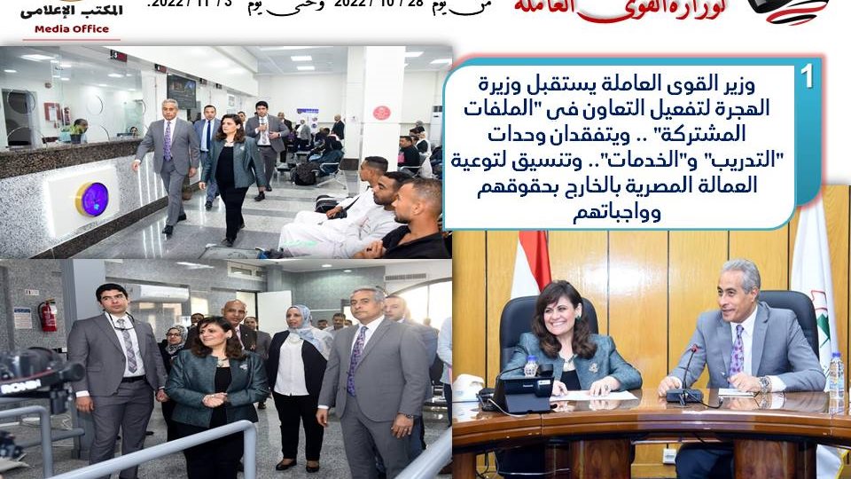ومن جانبه أكد وزير القوي العاملة أن التعاون بين الوزارتين مستمر في العديد من الملفات المشتركة التي تهم العمالة المصرية والمهاجرين بالخارج، مشيرا إلي أن الوزارة حريصة على رعاية وحماية العاملين المصريين بالخارج من خلال مكاتب التمثيل العمالي التابعة للوزارة بالسفارات المصرية التي تعمل على حل كافة المشكلات التي تواجه هذه العمالة، وتتواصل معها وتوعيتها بحقوقها وواجباتها، والتدخل في حال وجود مشكلات خاصة في عقود العمل، أو أي نزاعات.
