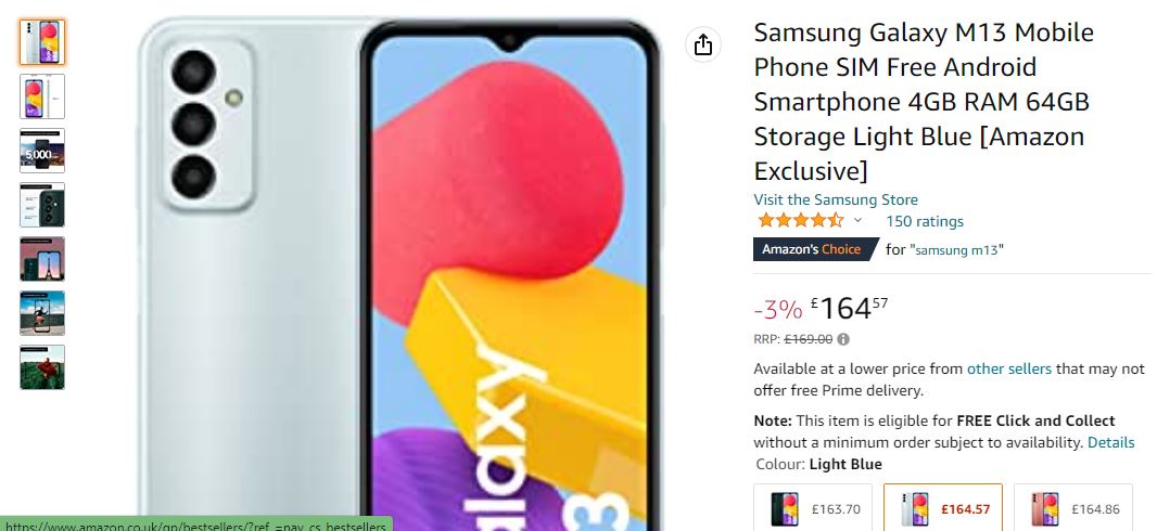 وتدرج سامسونج هاتف Galaxy M13، على موقعها على الالكتروني على الإنترنت في بريطانيا، مقابل سعر 199 جنيه إسترليني (أي ما يقرب من 5400 جنيه مصرى).