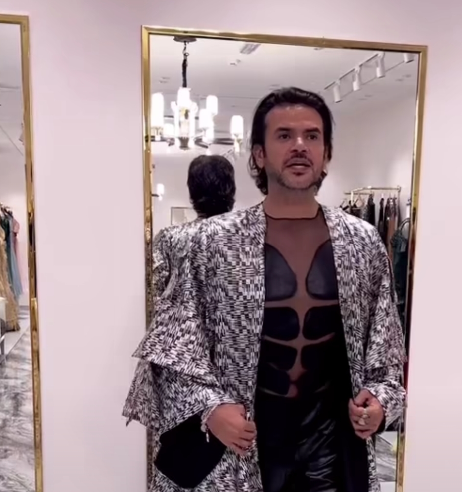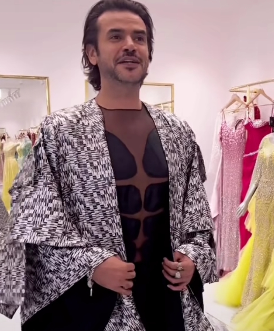 وظهر سامو زين بإطلالة غريبة وعلق على الفيديو: سعيد بالتعاون مع المصمم العالمي وليد عطا الله في الكليب الجديد".