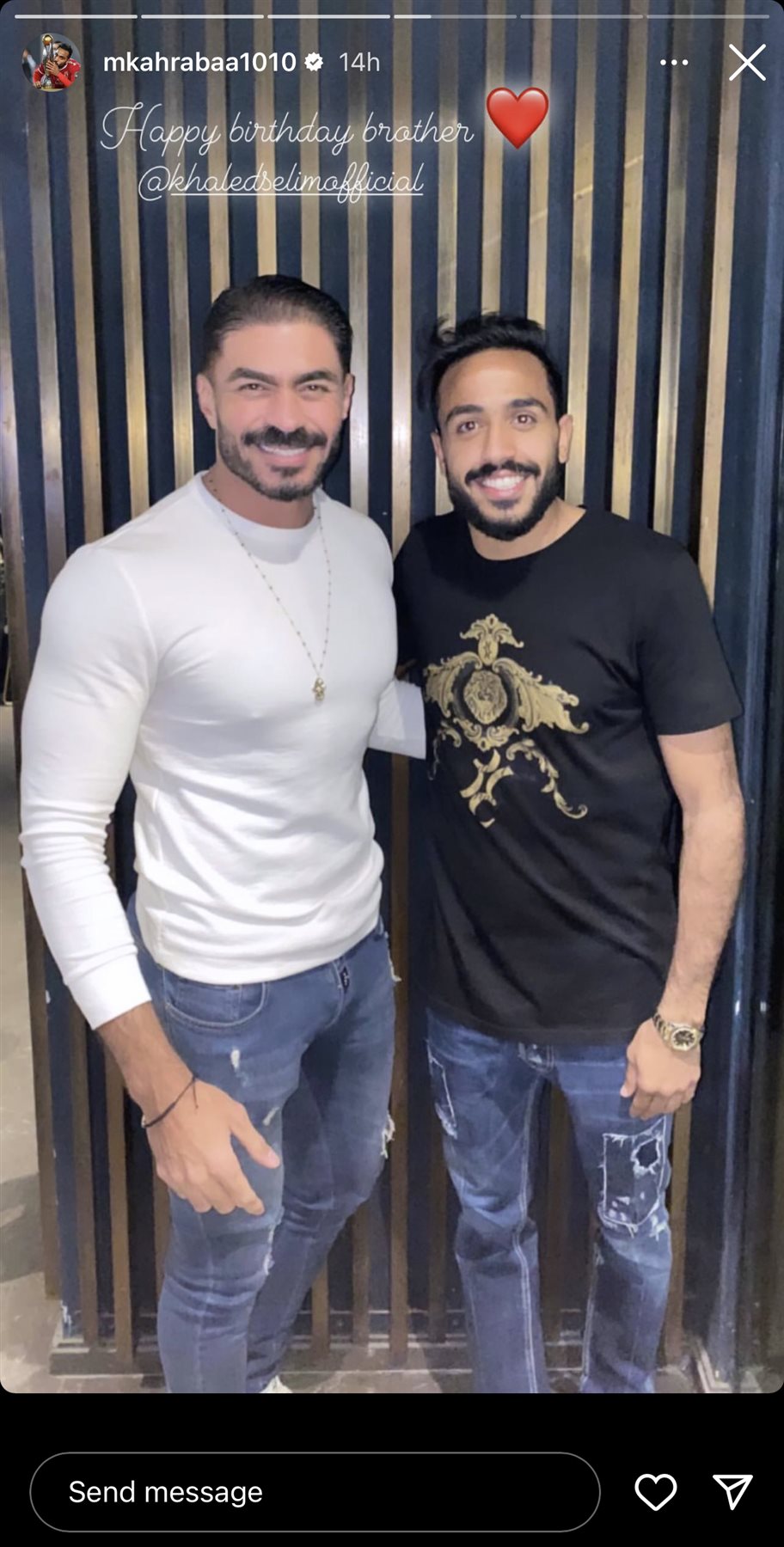 احتفل محمود كهربا، لاعب النادي الأهلي، بعيد ميلاد الفنان خالد سليم، عبر حسابه الشخصي بموقع التواصل الاجتماعي “انستجرام”.
