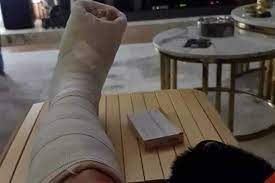 نجلاء بدر، لم تكن الأولى التي وضعت قدمها في الجبس ، بل تعرض أيضا مطرب المهرجانت عنبة لإصابة في قدمه.