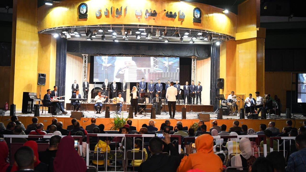 اختتمت جامعة جنوب الوادى، عروض الملتقى الفنى العشرين لشباب الجامعات، برئاسة الدكتور يوسف غرباوى، رئيس الجامعة، وإشراف الدكتور بدوى شحات، نائب رئيس الجامعة لشئون التعليم والطلاب، و بمشاركة 15 جامعة، تحت شعار" معاً لإحياء الموسيقى العربية" خلال الفترة من 5 إلى 10 نوفمبر الجارى.