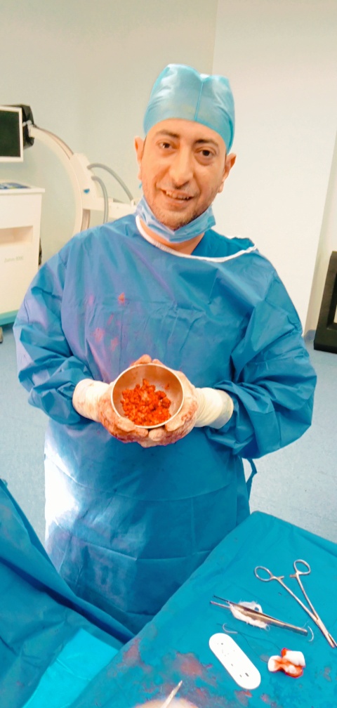 وقام الفريق الطبي تحت اشراف: ا. د/ راضي محمد غديري رئيس قسم العمليات؛ ا. د / ابراهيم الغريب استشاري جراحات المخ والاعصاب ،ا. د/ ابراهيم محمد عطيه استشاري التخدير، عمل توسيع للقناة العصبية واستئصال الغضروف المنزلق بين الفقرتين الرابعة والخامسة والتوسيع علي جذور الاعصاب وتمت الجراحة بنجاح باهر وحالة المريضة جيدة وتخضع للعلاج والمتابعة بقسم جراحات المخ والاعصاب .