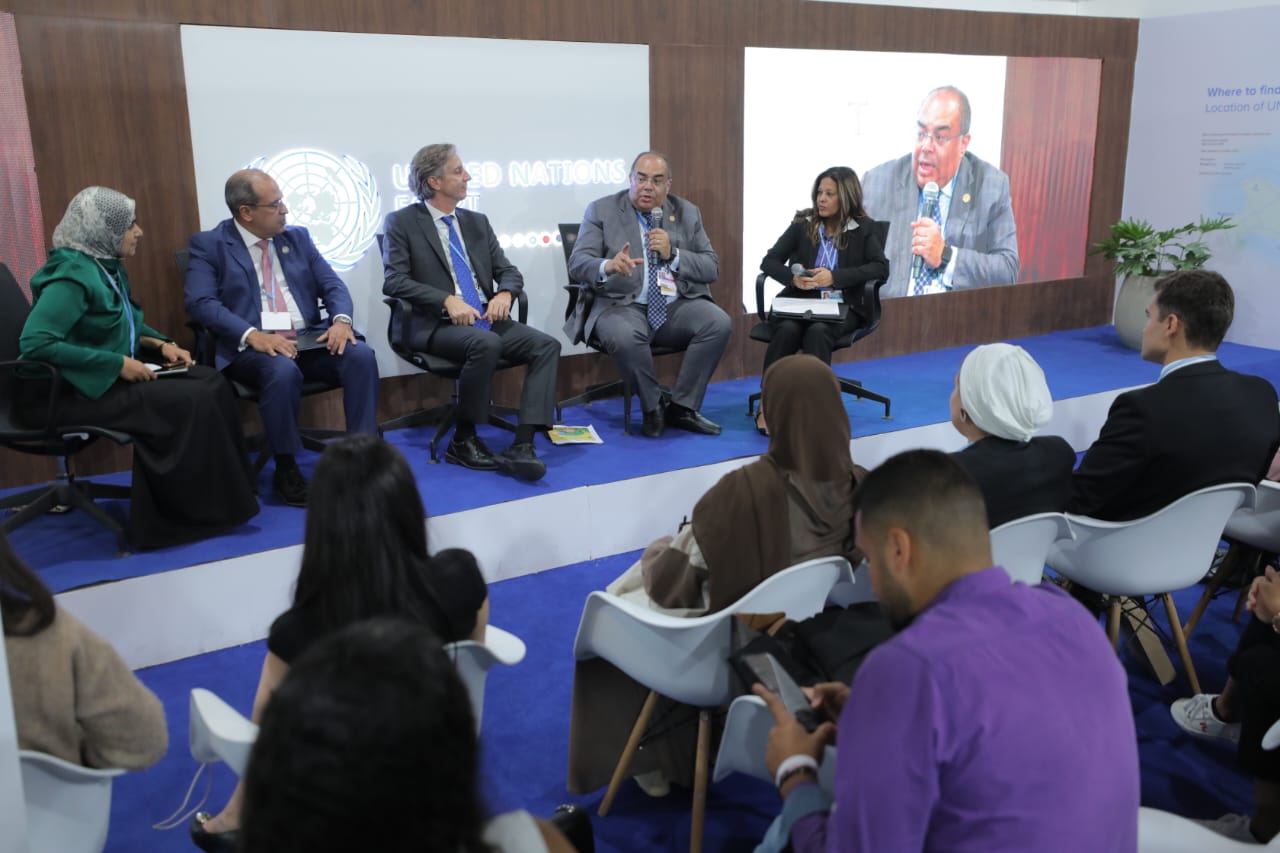 جاء ذلك خلال مشاركته في جلسة "نموذج محاكاة الجامعة البريطانية لمؤتمر الأطراف السابع والعشرين.. الدروس المستفادة وتطلعات لما بعد المؤتمر"، بمشاركة دكتور محمد لطفي، رئيس الجامعة البريطانية في مصر، وأليساندرو فراكاسيتي، الممثل المقيم لبرنامج الأمم المتحدة الإنمائي في مصر.
