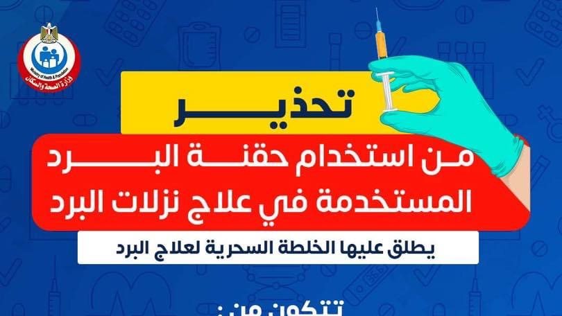 حذرت وزارة الصحة والسكان المواطنين من استخدام حقنة البرد في بيان صادر لها، وينص البيان على أن حقنة البرد تتكون من مضاد حيوي، و كورتيزون، ومسكن للألام، وتسبب خلل كبير في وظائف الكبد، محذرين من استخدام حقنة البرد والتي يطلق عليها الخلطة السحرية أو حقنة هتلر.