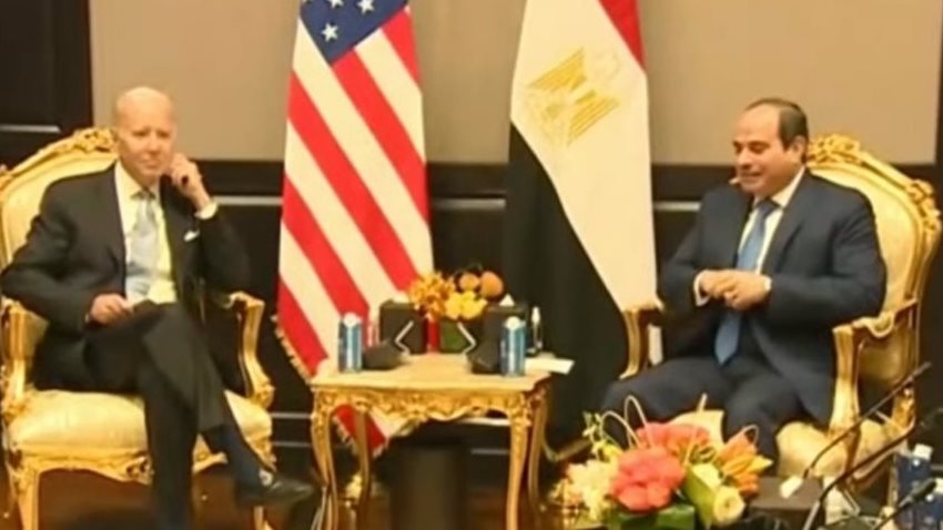 وقال جو بايدن، خلال لقائه بالرئيس السيسي، على هامش فعاليات قمة المناخ: “نحن ندرك أهمية هذا الموضع، وسنعمل على توجيه الجهود لمعالجة قضية المناخ”، موجها الشكر لمصر لقيامها بدور الوسيط فيما يتعلق بالوضع في فلسطين، وأيضا في موقفها من الأزمة الروسية الأوكرانية، والذي اتخذت موقفا رائعا وتحدثت بصوت عال ضد ما يجري.
