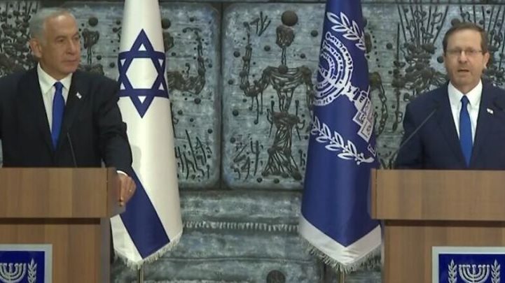 وقال الرئيس هرتسوج لنتنياهو خلال اجتماع في مقر إقامة الرئيس: "قررت أن أمنحك، عضو الكنيست بنيامين نتنياهو ، تفويضا بتشكيل الحكومة".