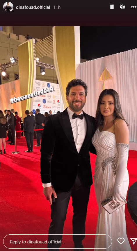 وظهر دينا فؤاد فى الصورة بصحبة حسن الرداد فى حفل افتتاح مهرجان القاهرة السينمائي الدولي في دورته الـ44 .