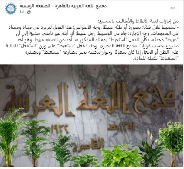 وإضافة هذه الكلمة يأتي ردا قويا على المهاجين للكتابة باللغة المصرية من المثقفين، لأنه يتضح لنا أن الاعتراف باللغة العربية وتحديد مصطلحاتها يتم عبر أشخاص يختارون ويحذفون ويطورون من اللغة.