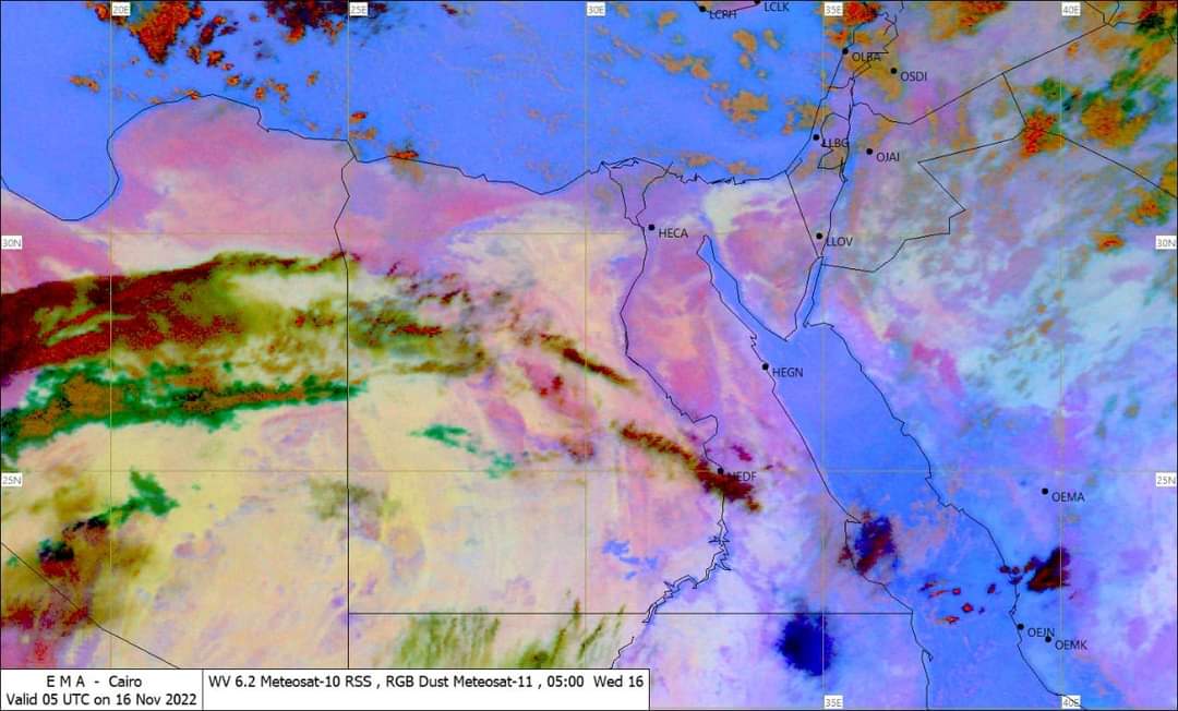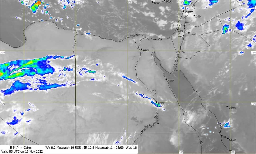 نشرت هيئة الأرصاد الجوية، صورًا للأقمار الصناعية وخرائط توزيعات الضغط، تشير إلى استمرار فرص سقوط الأمطار على مناطق متفرقة بالبلاد، يصاحبها أيضًا استمرار الانخفاض في درجات الحرارة.
