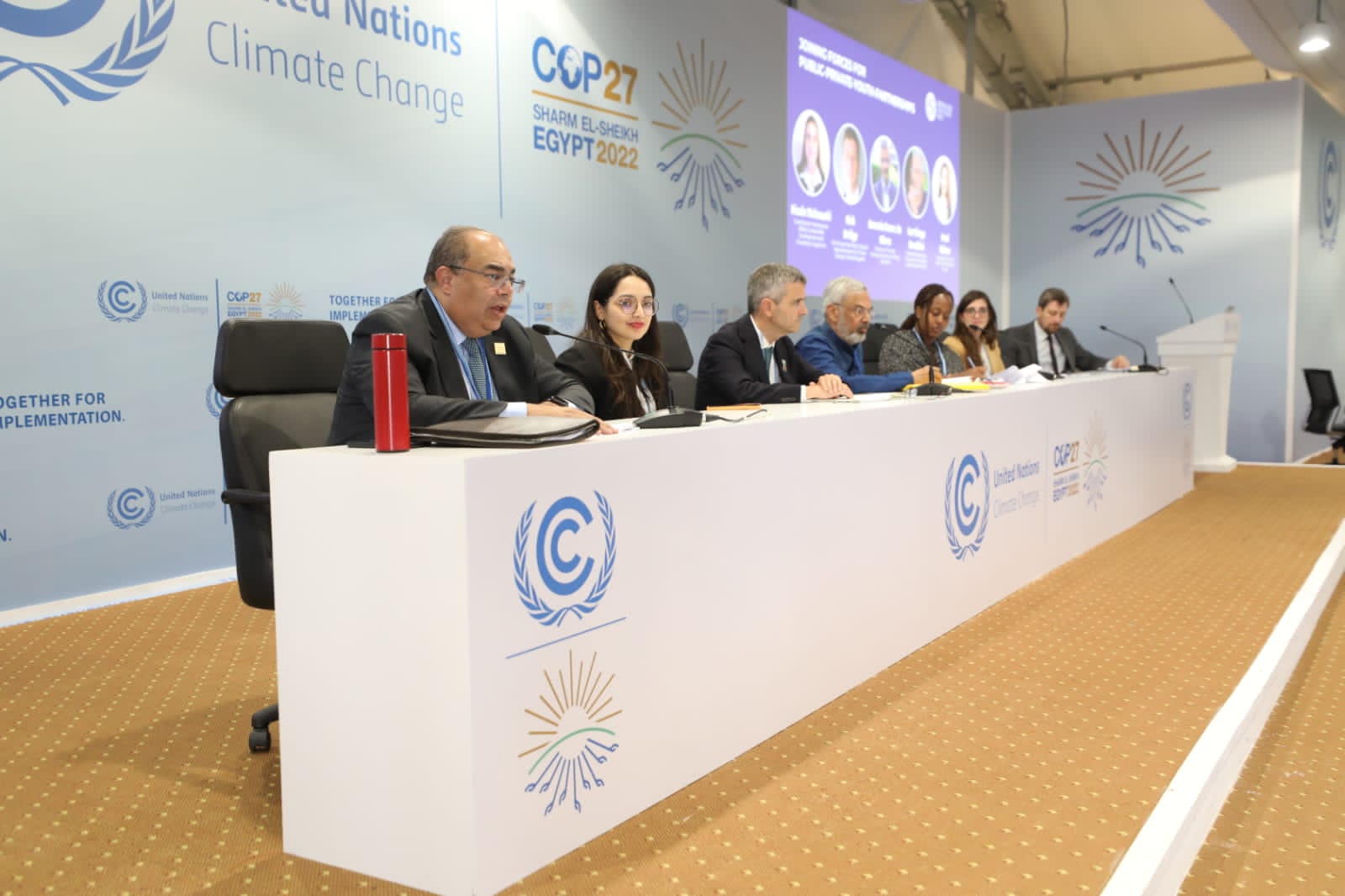 جاء ذلك خلال كلمته التي ألقاها بجلسة حول توحيد الجهود من أجل شراكات بين الشباب و القطاعين العام والخاص في إطار فعاليات قمة المناخ بشرم الشيخ.
