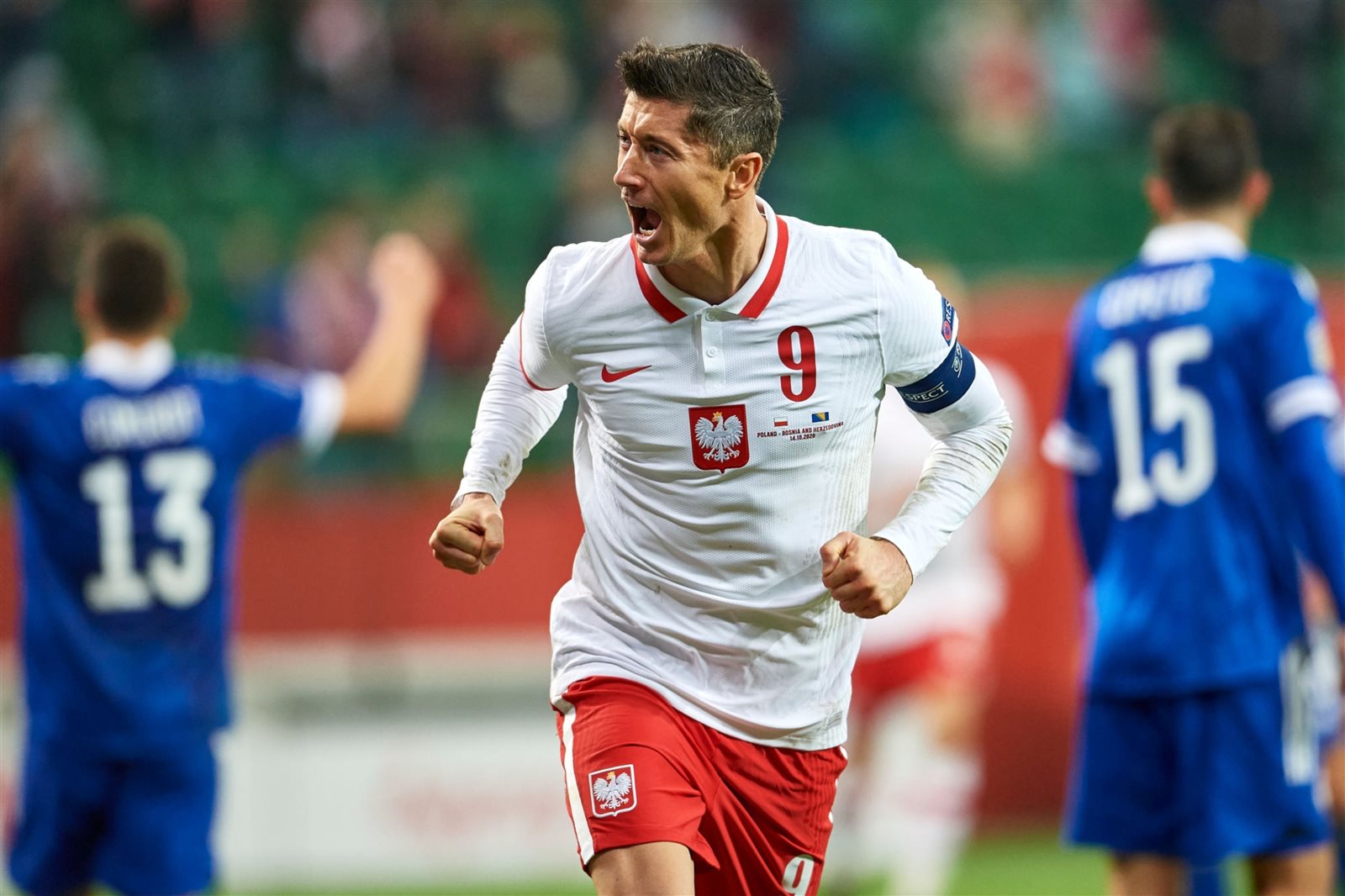 ويتواجد روبرت ليفاندوفسكي، مهاجم فريق برشلونة الإسباني، على مقاعد البدلاء.