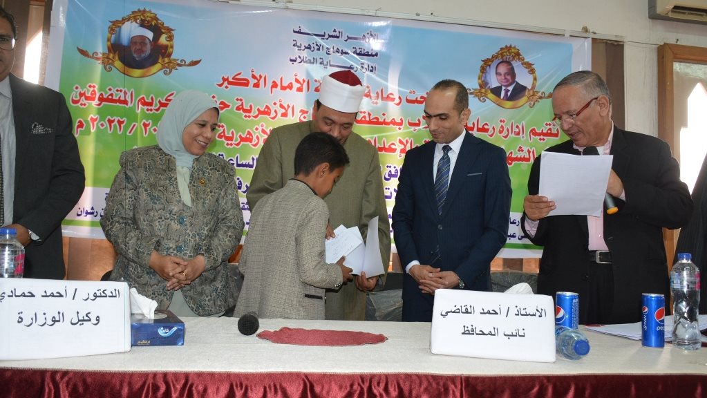 أناب اللواء طارق الفقي محافظ سوهاج، السيد أحمد سامي القاضي نائب المحافظ، لحضور حفل تكريم أوائل الشهادات الأزهرية "الابتدائية، الاعدادية، الثانوية"، والذي أقيم بمنطقة سوهاج الأزهرية، بحضور الدكتور أحمد حمادي رئيس الإدارة المركزية لمنطقة سوهاج الأزهرية، والنائب أحمد عواجة، والنائبة رقية الهلالي، أعضاء مجلس النواب، وعدد من الطلاب وأولياء الأمور.