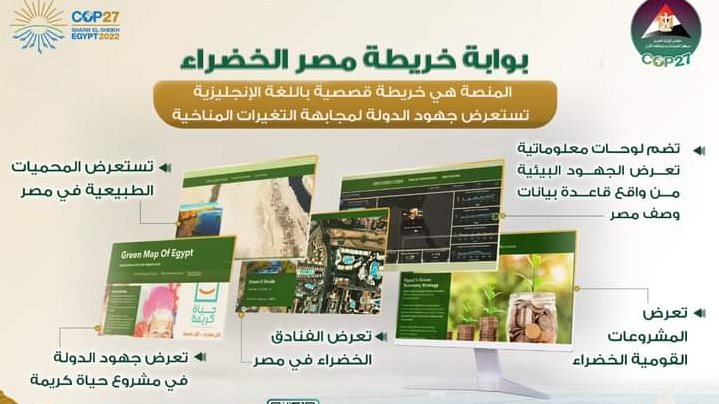 أطلق مركز المعلومات ودعم اتخاذ القرار بمجلس الوزراء، منصة إلكترونية على شبكة الإنترنت تحت عنوان: "خريطة مصر الخضراء"، لاستعراض جهود الدولة لمجابهة التغيرات المناخية، وهي على شكل خريطة قصصية باللغة الإنجليزية.