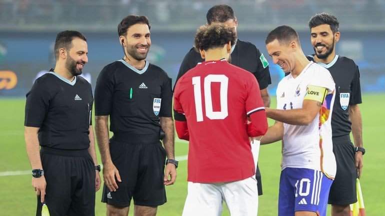 وداعب محمد صلاح نجم منتخب مصر الوطني إيدن هازارد نجم منتخب بلجيكا عقب إطلاق صافرة نهاية مباراة الفراعنة الكبار وبلجيكا.